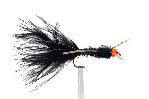 SCIENTIFIC FLY Bugger Nymph Black Orange Orange Brass Bead #8