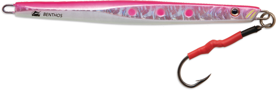 The Benthos 200?g is a go-to jig for big pelagics when fishing in strong currents and great depths. Its compact yet heavy profile allows for quick drop rates, and its luminous finish grabs attention even in low-light conditions. Designed tough for serious offshore anglers.
